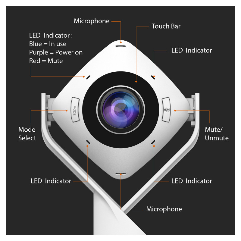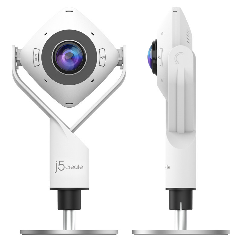 "j5create JVCU360 360° All Around Webcam, 1080p Video Capture Resolution, White and Black. Megapixel (approx.): 2.07 MP, Maximum video resolution: 1920 x 1080 pixels, Camera HD type: Full HD. Interface: USB 2.0, Product colour: Black, White, Mounting type: Stand. Other operating systems supported: ChromeOS. Width: 93.5 mm, Depth: 37 mm, Height: 193 mm. Package type: Box, Package width: 193 mm, Package depth: 125 mm"\n"Enhance your conference calls with the 360° All Around Webcam. This all-in-one virtual meeting device combines HD video with business-grade audio clarity, to help run your video conferences smoothly. This high-definition, plug-and-play webcam, is ideal for any space. Capture a 360° panoramic view of the room or focus on specific presenters with the various display modes. The 360° All Around Webcam is equipped with a USB-C® cable and a USB™ Type-A connector to work with both your older and newer devices."