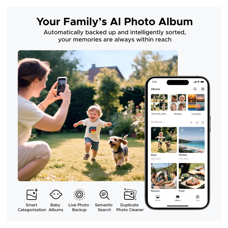 AI Album Recognition & Classification: The 4 bay nas supports real-time photo backups and intelligent album management including semantic search, custom learning, recognition of people, object, pet, similar photo. Thus, you can classify and find your photos easily. What's more, it can also remove duplicate photos as desired.