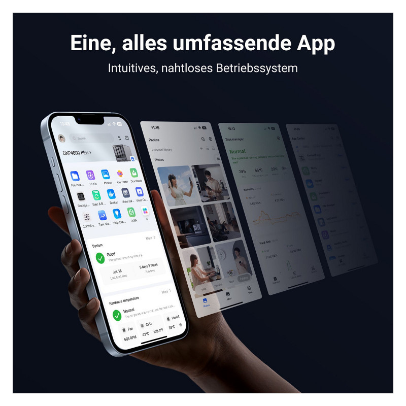 "Ugreen NASync DXP4800 Plus. Type: NAS. Chassis type: Desktop. Device class: Home & Home Office. Processor family: Intel® Pentium® Gold, Processor model: 8505. Internal memory: 8 GB, Internal memory type: DDR5. Total installed storage capacity: 0 TB. Operating system installed: UGOS PRO"\n