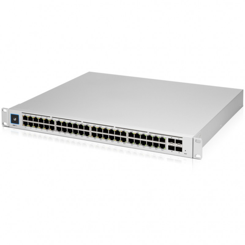 The UniFi Switch Pro 48 features a rich set of Layer 2 capabilities and integrates Layer 3 functionality such as inter-VLAN routing, static routing, and DHCP server. The UniFi Switch Pro 48 is an ideal aggregation and access layer switch for any UniFi solution – it combines innovative near-silent cooling with UniFi SmartPower RPS power redundancy. UniFi Network Controller and UniFi Network mobile app allow admins to configure and monitor virtually all of the switch features in an intuitive graphical user interface from anywhere."