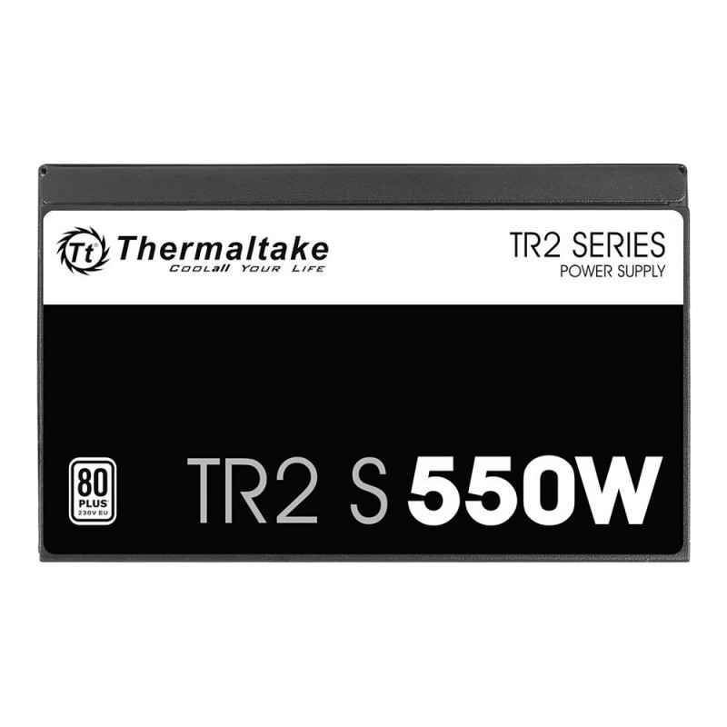 "Thermaltake TR2 S 550W. Total power: 550 W, AC input voltage: 200 - 240 V, AC input frequency: 50 Hz. Motherboard power connector: 20+4 pin ATX, Motherboard power cable length: 60 cm, SATA power cable length: 500 mm. Purpose: PC/Server, Power supply unit (PSU) form factor: ATX, 80 PLUS certification: 80 PLUS. Product colour: Black, Cooling type: Active, Fan diameter: 12 cm. Certification: FCC/ICES/CB/cTUVus"\n"TR2 S 550W (DC to DC Version)