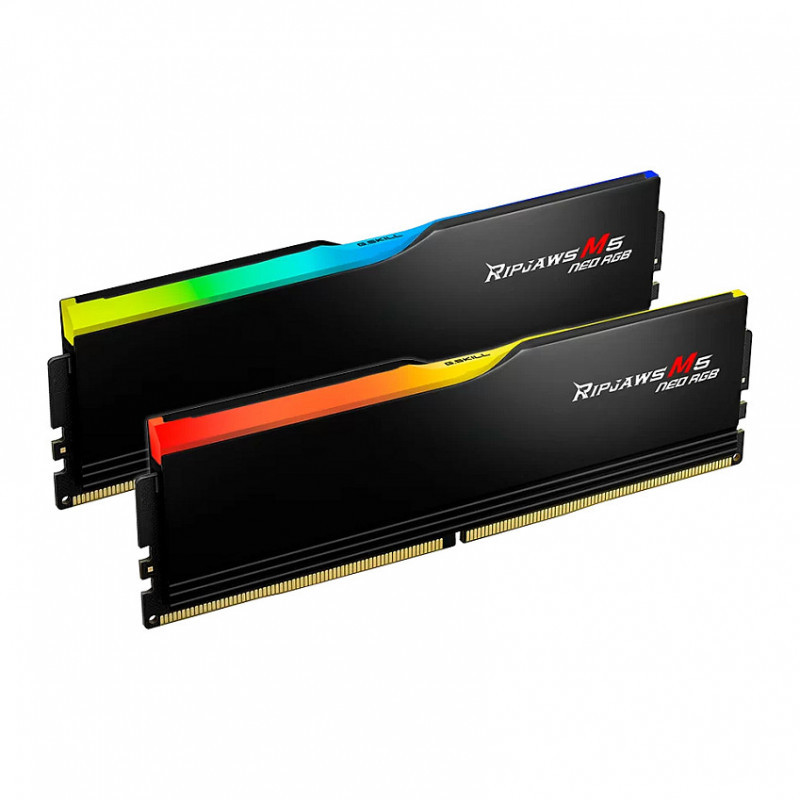 Ripjaws M5 Neo RGB is a performance DDR5 DRAM memory series designed for AMD AM5 platforms. Featuring matte black or matte white aluminum heatspreaders and customizable RGB lighting, the Ripjaws M5 Neo RGB is the ideal memory kit for a wide variety of PC builds and themes.