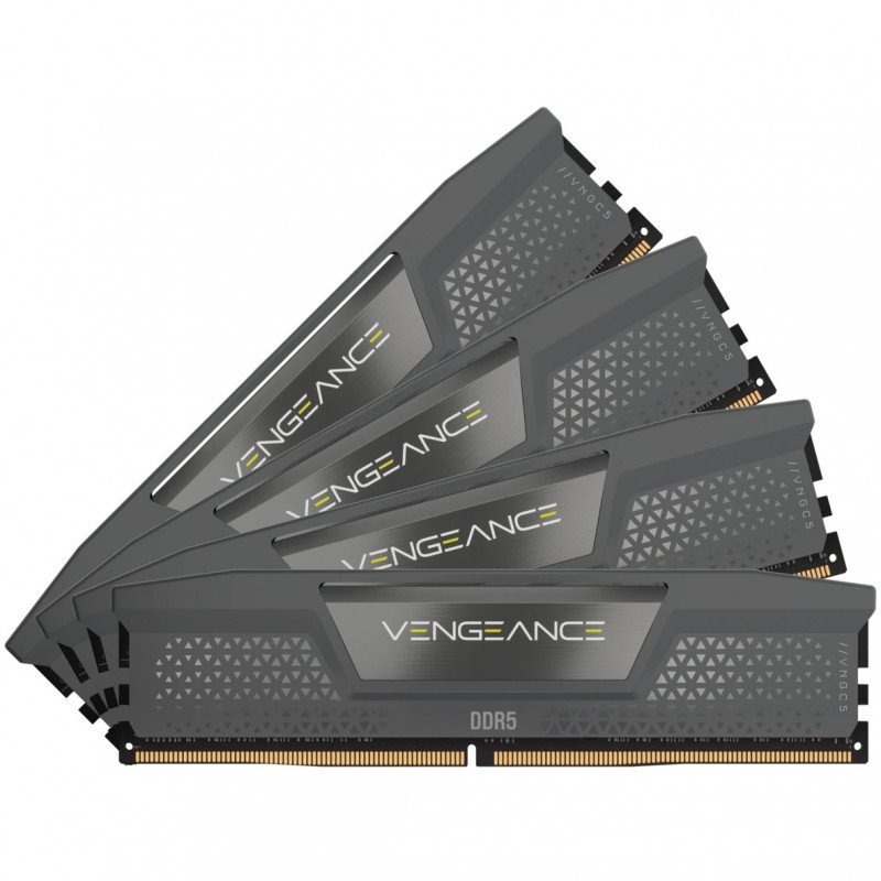 "Corsair Vengeance CMK64GX5M4B6000Z36. Component for: PC, Internal memory: 64 GB, Memory layout (modules x size): 4 x 16 GB, Internal memory type: DDR5, Memory clock speed: 6000 MHz, Memory form factor: 288-pin DIMM, CAS latency: 36"\n"VENGEANCE DDR5