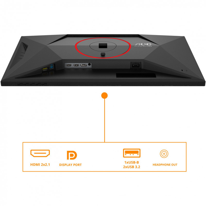 "AOC G4 U27G4R. Display diagonal: 68.6 cm (27""), Display resolution: 3840 x 2160 pixels, HD type: 4K Ultra HD, Display technology: LED, Response time: 1 ms, Native aspect ratio: 16:9, Viewing angle, horizontal: 178°, Viewing angle, vertical: 178°. Built-in USB hub, USB hub version: 3.2 Gen 1 (3.1 Gen 1). VESA mounting, Height adjustment. Product colour: Black, Red"\n"Dominate your gaming experience with the U27G4R Dual-Frame Monitor, a cutting-edge display offering ultimate flexibility between UHD at 160Hz and FHD at 320Hz.