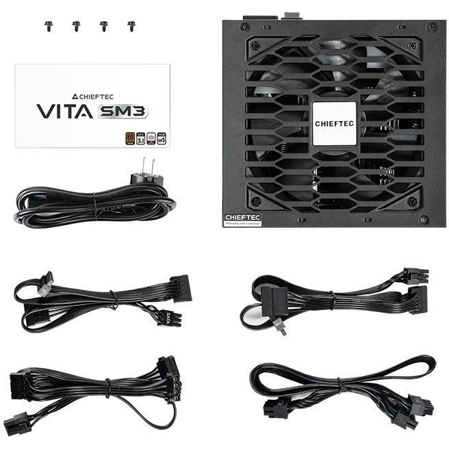 "Chieftec Vita BPX-750-C. Total power: 750 W, AC input voltage: 100 - 240 V, AC input frequency: 50/60 Hz. Motherboard power connector: 20+4 pin ATX, Motherboard power cable length: 65 cm, SATA power cable length: 120,450 mm. Purpose: PC/Server, Power supply unit (PSU) form factor: ATX, 80 PLUS certification: 80 PLUS Bronze. Product colour: Black, Cooling type: Active. Width: 140 mm, Depth: 150 mm, Height: 86 mm"\n