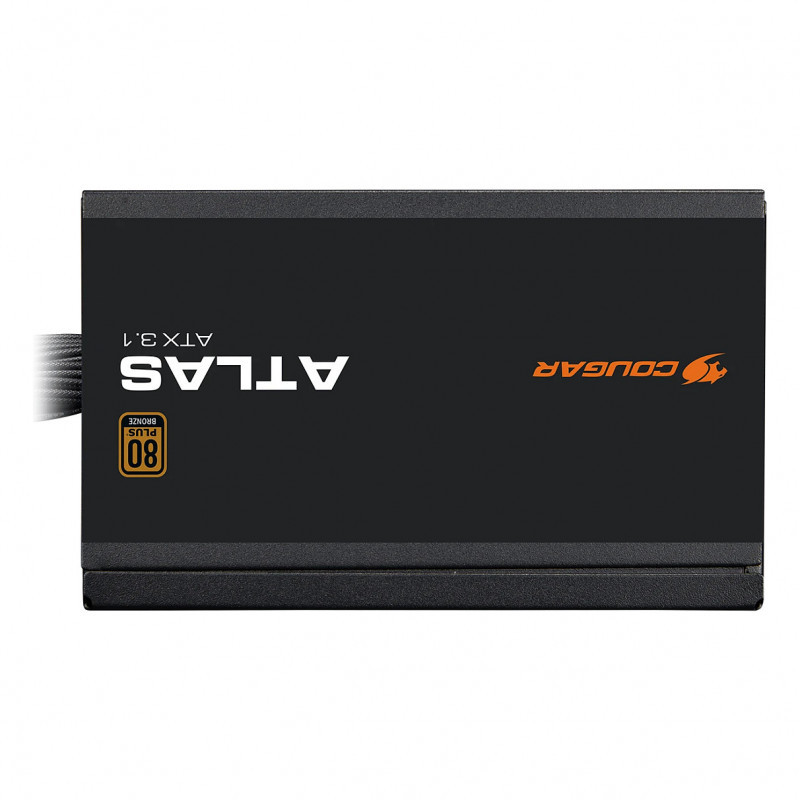 "COUGAR Power Supply ATLAS 750W ATX3.1 / 80 Plus Bronze. Total power: 750 W, AC input voltage: 100 - 240 V, AC input frequency: 50/60 Hz. Motherboard power connector: 24-pin ATX, Motherboard power cable length: 55 cm, SATA power cable length: 150,450 mm. Purpose: PC, Power supply unit (PSU) form factor: ATX, 80 PLUS certification: 80 PLUS Bronze. Product colour: Black, Cooling type: Active, Fan diameter: 12 cm. Certification: CE, FCC, RoHS"\n"RELIABLE ATX 3.1 POWER SUPPLY