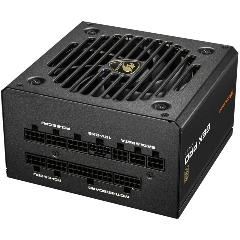 "COUGAR Power Supply GEX PRO 750W ATX3.1 / 80 Plus Gold / Modular. Total power: 750 W, AC input voltage: 100 - 240 V, AC input frequency: 50/60 Hz. Motherboard power connector: 20+4 pin ATX, Motherboard power cable length: 61 cm, SATA power cable length: 400,520,640,760 mm. Purpose: PC, Power supply unit (PSU) form factor: ATX, 80 PLUS certification: 80 PLUS Gold. Product colour: Black, Cooling type: Active, Fan diameter: 12 cm. Compliance certificates: CE, EAC, Federal Communications Commission (FCC), RoHS, UKCA"\n"GEX PRO 650/750/850W