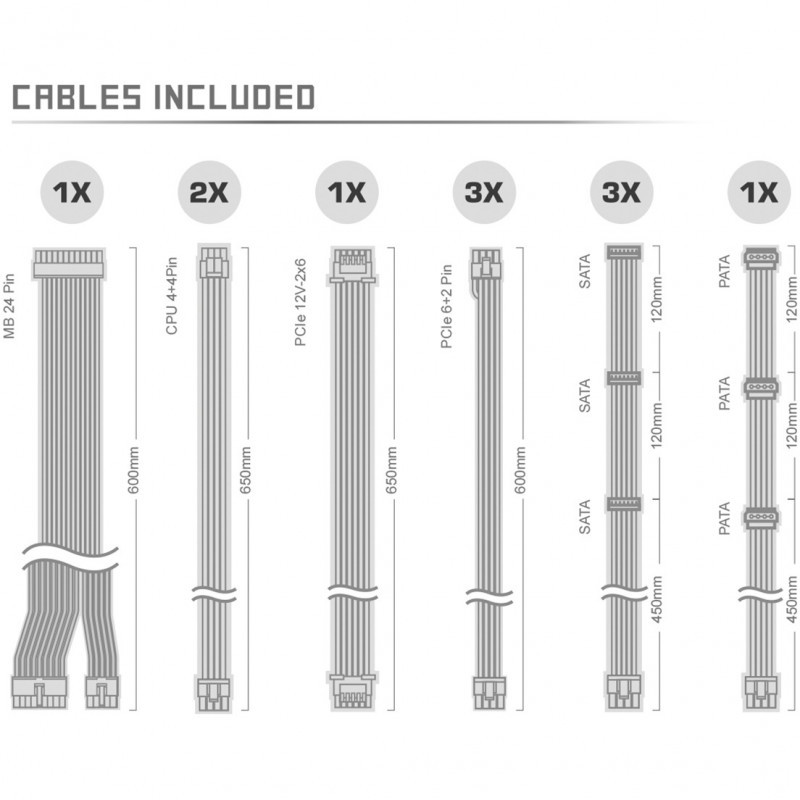 "Asrock SL-850GW Steel Legend. Total power: 850 W, Power protection features: Overheating, Over current, Overload, Over voltage, Short circuit. Motherboard power connector: 20+4 pin ATX, Motherboard power cable length: 60 cm, SATA power cable length: 120,450 mm. Purpose: PC, Power supply unit (PSU) form factor: ATX, 80 PLUS certification: 80 PLUS Gold. Product colour: White, Cooling type: Active, Fan diameter: 13.5 cm. Width: 150 mm, Depth: 150 mm, Height: 86 mm"\n"Native PCIe 12V-2x6 Cable