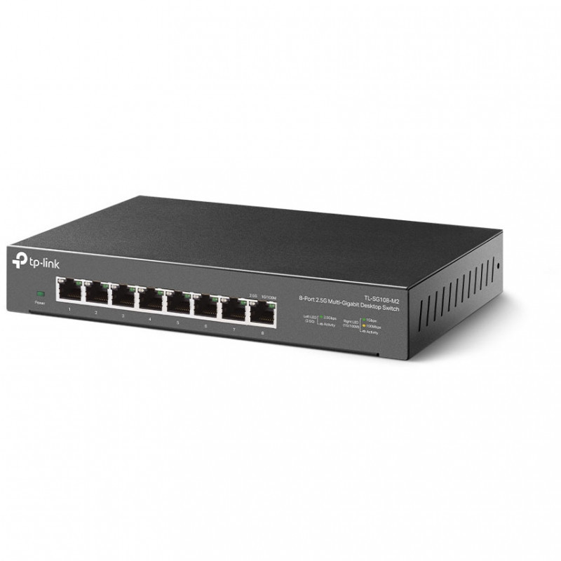 "TP-Link 8-Port 2.5G Desktop Switch. Switch type: Unmanaged. Basic switching RJ-45 Ethernet ports type: 2.5G Ethernet (100/1000/2500), Basic switching RJ-45 Ethernet ports quantity: 8. MAC address table: 16000 entries, Switching capacity: 40 Gbit/s. Networking standards: IEEE 802.3, IEEE 802.3ab, IEEE 802.3bz, IEEE 802.3p, IEEE 802.3u, IEEE 802.3x. Wall mountable"\n"Upgrade to a Super-Fast, Futuristic Network