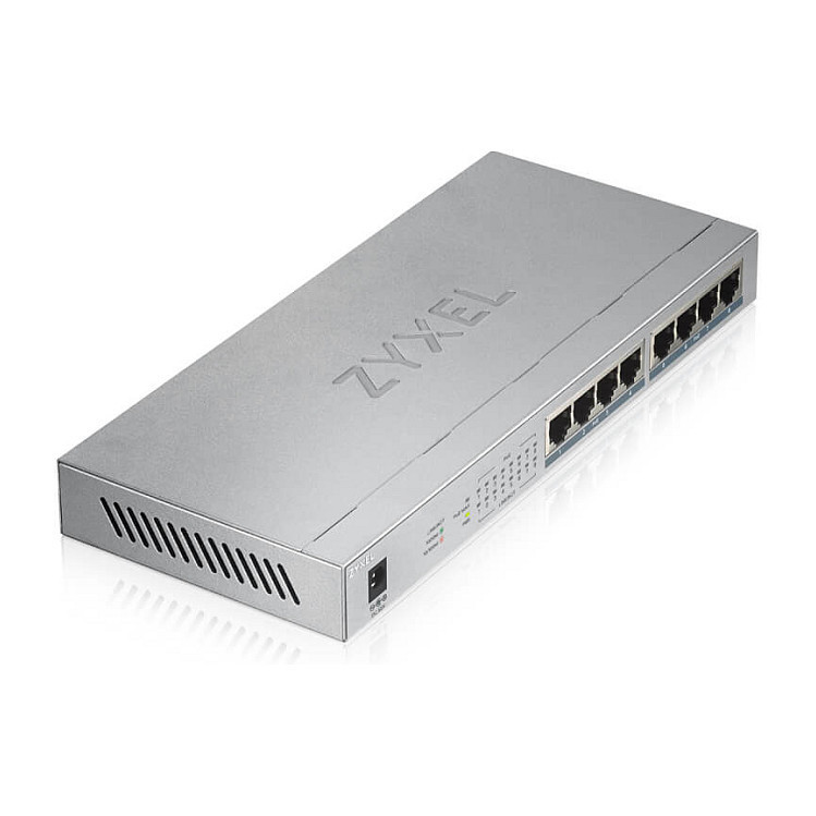 "Zyxel GS1008HP. Switch type: Unmanaged. Basic switching RJ-45 Ethernet ports type: Gigabit Ethernet (10/100/1000), Basic switching RJ-45 Ethernet ports quantity: 8. Switching capacity: 16 Gbit/s. Networking standards: IEEE 802.3, IEEE 802.3ab, IEEE 802.3u, IEEE 802.3x. DC input voltage: 55 V. Power connector: DC-in jack. Power over Ethernet (PoE)"\n"Meeting the price and power demands of small businesses