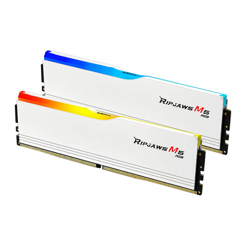 "G.Skill Ripjaws M5 RGB F5-5600J4040D48GX2-RM5RW. Component for: PC, Internal memory: 96 GB, Memory layout (modules x size): 2 x 48 GB, Internal memory type: DDR5, Memory clock speed: 5600 MHz, Memory form factor: 288-pin DIMM, CAS latency: 40"\n"Ripjaws M5 RGB is a performance DDR5 DRAM memory series designed for PC enthusiasts and gamers. Featuring matte black or matte white aluminum heatspreaders and customizable RGB lighting, the Ripjaws M5 RGB is the ideal memory kit for a wide variety of PC builds and themes.