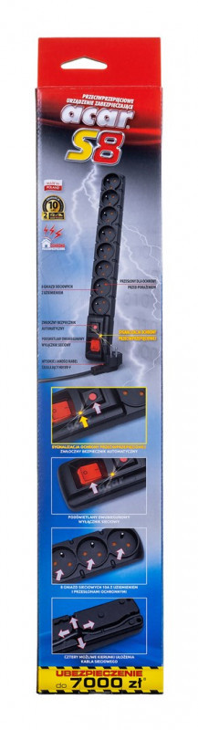 ACAR S8 elektros tinklo ilgintuvas 1,5 m 8 AC išvestis(ys / čių) Vidaus Juoda