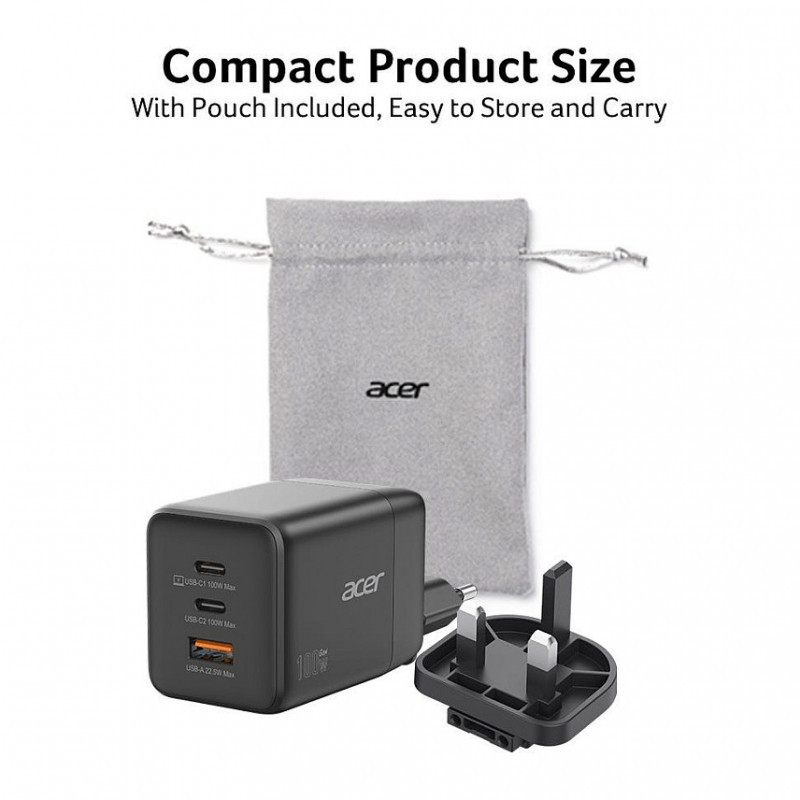 Acer GaN 100w 2 x USB-C + 1x USB-A ports. black