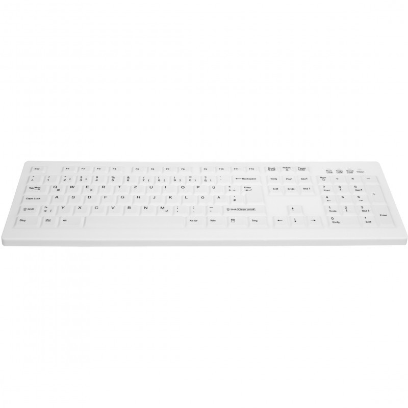 "Contour Design Active Key Contour ClassicClean Medical Keyboard Removable Cover Full-Size Wired White DE C8100. Keyboard style: Straight. Connectivity technology: Wired, Device interface: USB, Keyboard key switch: Membrane, Keyboard layout: QWERTZ, Keyboard number of keys: 105, Recommended usage: Medical. Product colour: White"\n"MEDICAL PC KEYBOARD FOR CLEANING AND HYGIENE