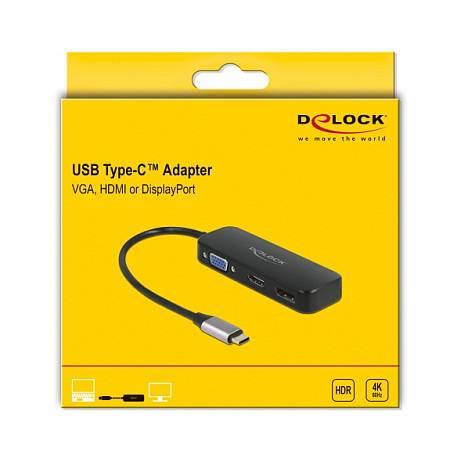 Adapter USB-C -> DP HDMI VGA DeLOCK Black