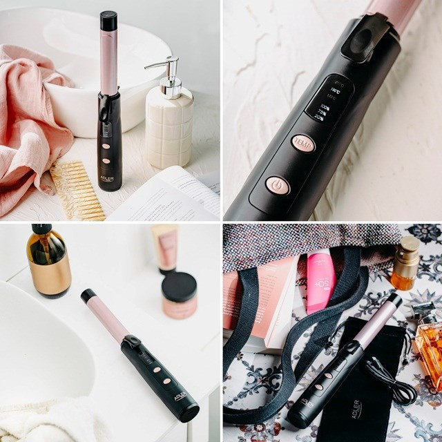 Adler AD 2120 Belaidės USB plaukų garbanojimo žnyplės juoda, rožinė