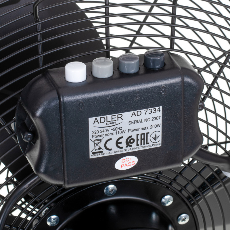 Adler Fan | AD 7334 | Velocity fan | Black | Diameter 45 cm | Number of speeds 3 | Oscillation | 110 W