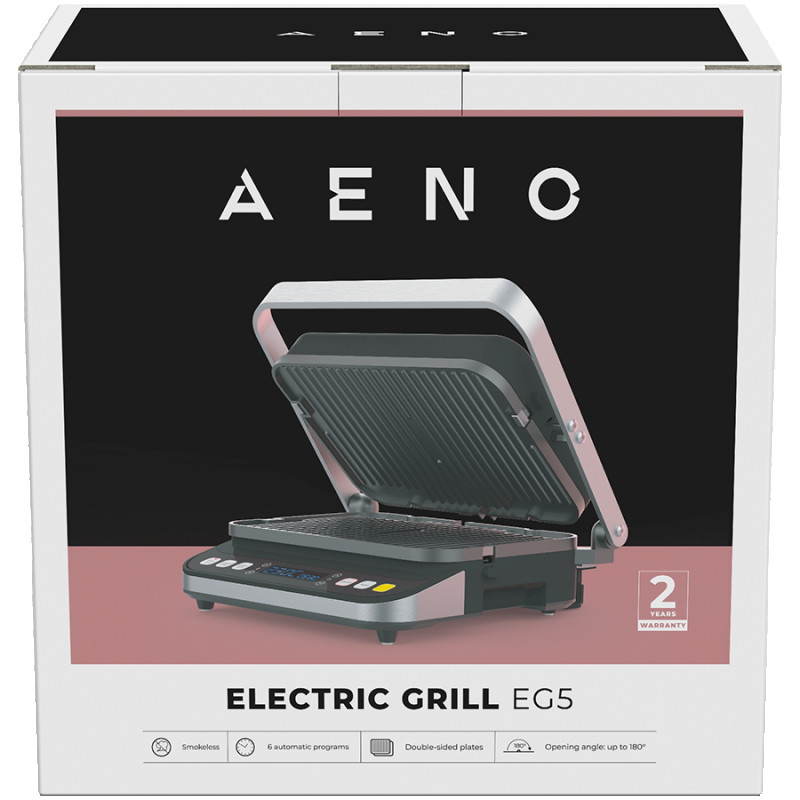 AENO ''Electric Grill EG5: 2000W, 2 heating modes - Lower Grill, Both Grills, 6 preset programs, Defrost, Max opening angle -180°, Temperature regulation, Timer, Removable double-sided plates, Plate size 320*220mm''