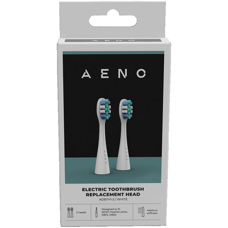 AENO Replacement toothbrush heads, White, Dupont bristles, 2pcs in set (for ADB0001S/ADB0002S)