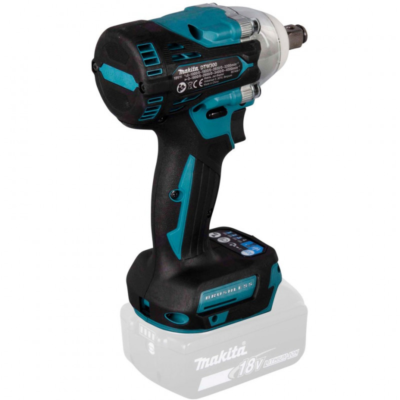"Makita DTW300Z. Product type: Impact driver, Handle shape: Pistol handle, Chuck diameter: 1/2"". Idle speed (max): 3200 RPM, Torque (min): 100 N⋅m, Torque (max): 330 N⋅m. Power source: Battery, Battery voltage: 18 V. Width: 81 mm, Depth: 144 mm, Height: 246 mm"\n