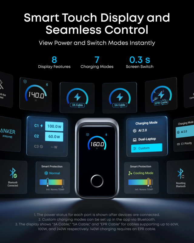 Anker Prime Charger, 3 Ports, 160W, Silver