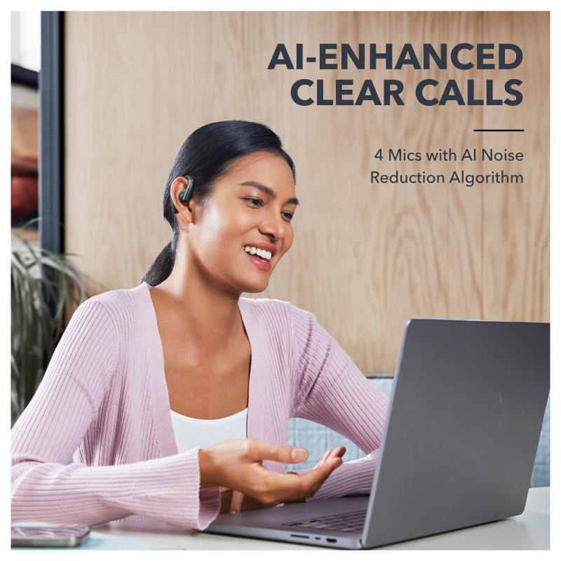 "Soundcore AeroFit. Product type: Headset. Connectivity technology: Wireless, Bluetooth. Recommended usage: Calls/Music/Sport/Everyday. Wireless range: 10 m. Weight: 64.6 g. Product colour: Black"\n