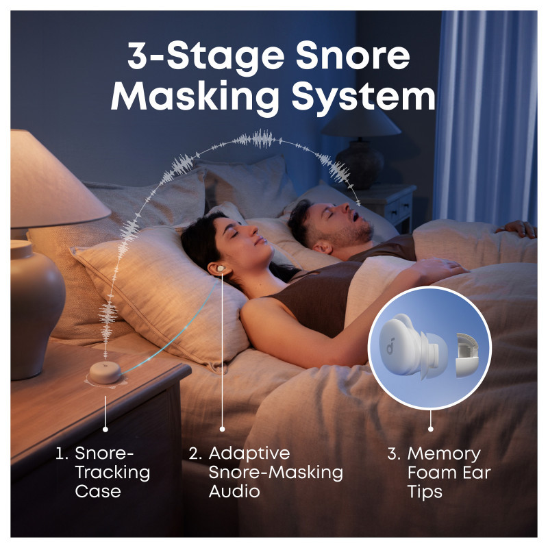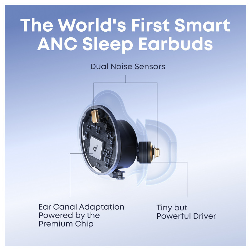 "Soundcore Sleep A30. Type: Reusable ear plug, Ear plugs purpose: Sleeping, Installation type: In-ear. Quantity per pack: 2 pc(s)"\n