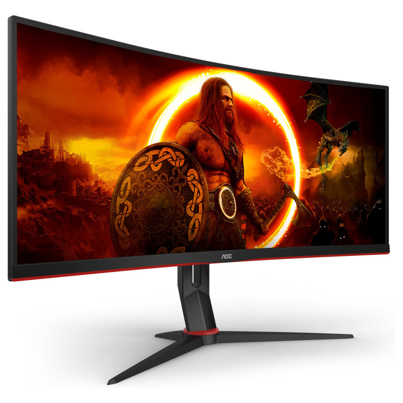 "AOC G2 CU34G2XP. Display diagonal: 86.4 cm (34""), Display resolution: 3440 x 1440 pixels, HD type: UltraWide Quad HD, Display technology: LED, Response time: 5 ms, Native aspect ratio: 21:9, Viewing angle, horizontal: 178°, Viewing angle, vertical: 178°. Built-in USB hub. VESA mounting, Height adjustment. Product colour: Black, Red"\n"Unleash visual perfection with the CU34G2XP/BK, a 34-Inch Ultrawide Curved Monitor Offering WQHD Resolution and 180Hz Refresh Rate