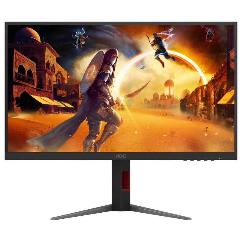 "AOC G4 U27G4XM. Display diagonal: 68.6 cm (27""), Display resolution: 3840 x 2160 pixels, HD type: 4K Ultra HD, Display technology: LED, Response time: 1 ms, Native aspect ratio: 16:9, Viewing angle, horizontal: 178°, Viewing angle, vertical: 178°. Built-in USB hub, USB hub version: 3.2 Gen 1 (3.1 Gen 1). VESA mounting, Height adjustment. Product colour: Black, Red"\n"Elevate your play with the U27G4XM MiniLED dual gaming monitor
