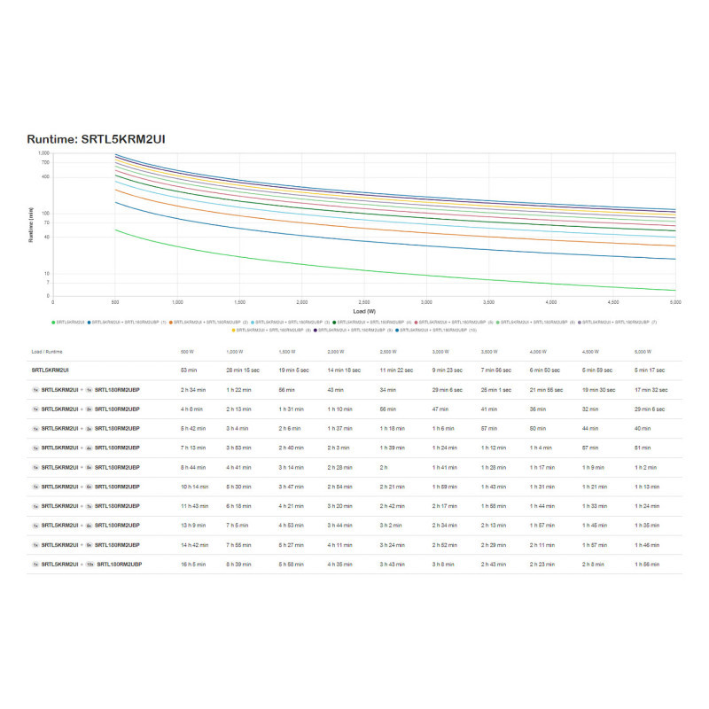 You can easily read the expected battery life in the runtime graph, which you can find between the product images. You can easily see how long the UPS supplies emergency power at a certain load.
