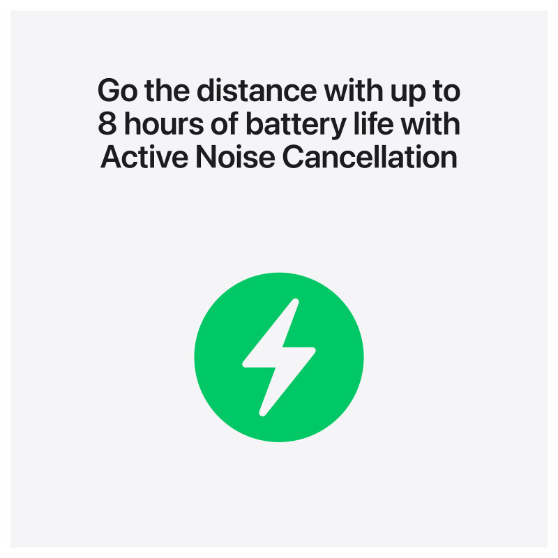 • Baterija: iki 8 val. klausymosi su ANC, iki 24 val. su įkrovimo dėklu
