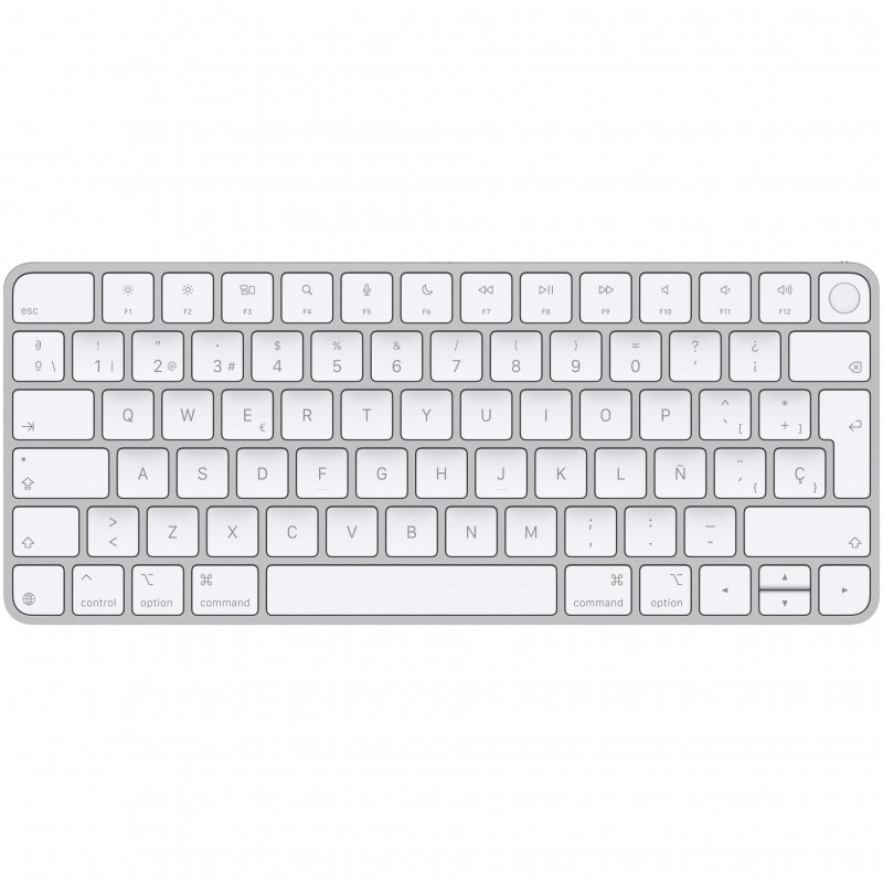 "Apple Magic Keyboard with Touch ID for Mac models with silicon (USB–C) - Spanish. Keyboard form factor: Tenkeyless (80 - 87%). Keyboard style: Straight. Connectivity technology: Wired & Wireless, Device interface: USB + Bluetooth, Keyboard layout: QWERTY, Fingerprint reader, Recommended usage: Universal. Product colour: Silver, White"\n"Magic Keyboard is available with Touch ID, providing fast, easy and secure authentication for logins and to unlock your Mac.