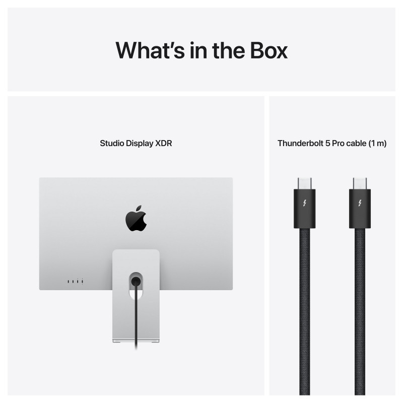"Apple Studio Display XDR - Standard glass - Tilt- and height-adjustable stand. Display diagonal: 68.6 cm (27""), Display resolution: 5120 x 2880 pixels, HD type: 5K Ultra HD, Display technology: LED, Native aspect ratio: 16:9. Built-in speaker(s). Built-in USB hub. Height adjustment. Product colour: Silver"\n"Pixel sharpener."