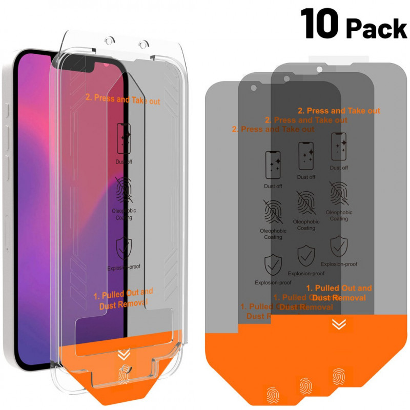 "4smarts Second Glass Privacy. Brand compatibility: Apple, Compatibility: iPhone 13, iPhone 13 Pro, iPhone 14, iPhone 16e, Protection features: Dust resistant, Oil resistant. Material: Tempered glass, Product colour: Transparent. Quantity per pack: 10 pc(s)"\n