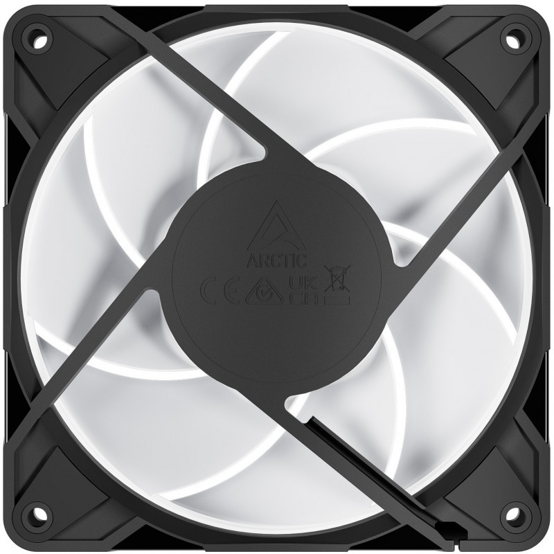 "ARCTIC Freezer P12 Pro A-RGB - 3 Pack - 120 mm A-RGB PWM Fan with Cable Splitter. Type: Fan, Fan diameter: 12 cm, Airflow: 131 m³/h, Bearing type: Fluid Dynamic Bearing (FDB). Product colour: Black, White"\n"ARCTIC’s versatile assortment of PC fans are both quiet and powerful. We have the right options for any application or need, in sizes from 80 to 140 mm. Plus, our case fans are equipped with state-of-the-art engine technology, innovative fan blades and high quality bearings, making them particularly durable and efficient."