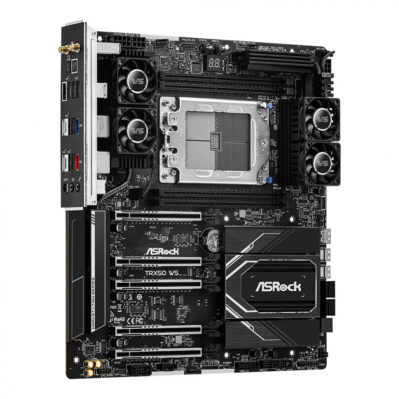 "Asrock TRX50 WS. Processor manufacturer: AMD, Processor socket: Socket sTR5, Compatible processor series: AMD Ryzen Threadripper 1000 Series. Supported memory types: DDR5-SDRAM, Maximum internal memory: 1 TB, Memory slots type: DIMM. Supported storage drive interfaces: M.2, PCI Express 4.0, PCI Express 5.0, SATA III, RAID levels: 0, 1, 10. Ethernet interface type: 2.5 Gigabit Ethernet, 5 Gigabit Ethernet, 10 Gigabit Ethernet, Fast Ethernet, Gigabit Ethernet, LAN controller: Dragon RTL8125BG, Marvell AQtion AQC113C, Top Wi-Fi standard: Wi-Fi 6E (802.11ax). Component for: PC, Motherboard form factor: Extended ATX, Motherboard chipset family: AMD"\n"Long Lasting 20K Cap