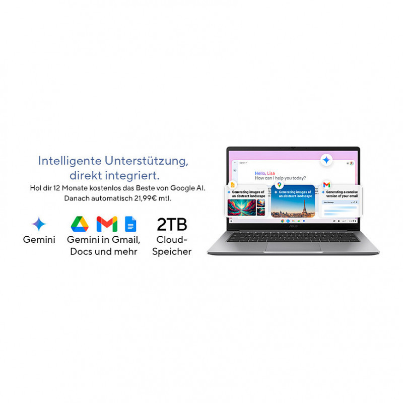 "ASUS Chromebook CX1405CTA-MW0355. Product type: Chromebook, Form factor: Clamshell. Processor family: Intel Core 3, Processor model: N355. Display diagonal: 35.6 cm (14""), HD type: Full HD, Display resolution: 1920 x 1080 pixels. Internal memory: 8 GB, Internal memory type: LPDDR5-SDRAM. Total storage capacity: 128 GB, Storage media: eMMC. On-board graphics card model: Intel Graphics. Operating system installed: ChromeOS. Product colour: Grey. Weight: 1.44 kg"\n"Style That Works