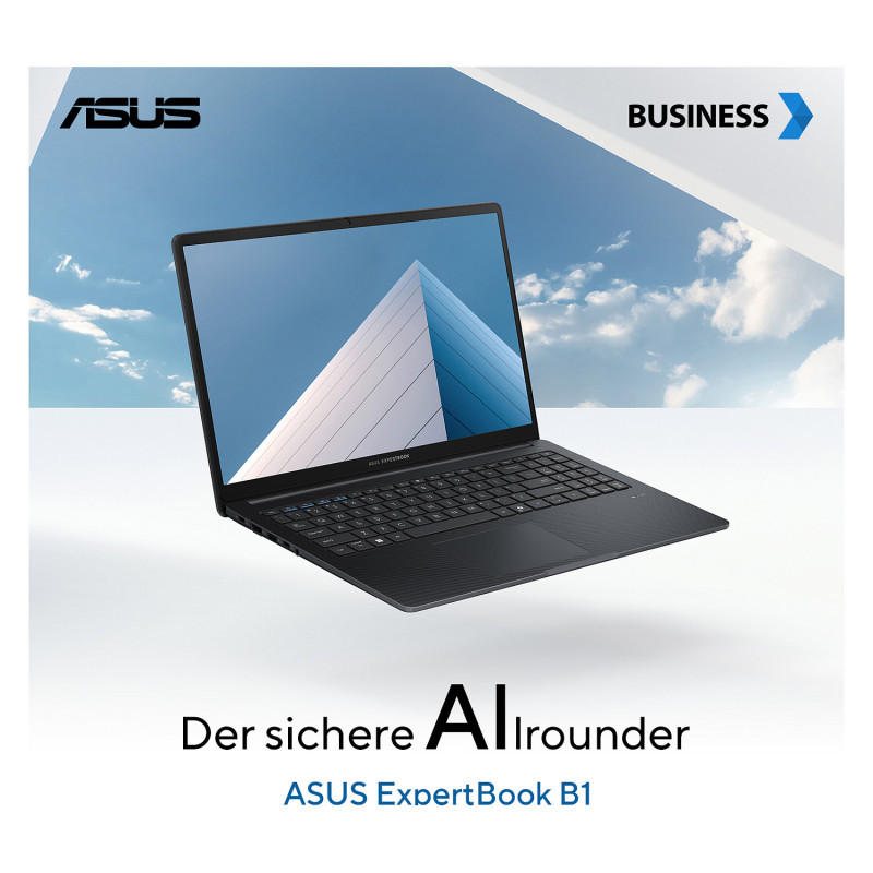 "ASUS ExpertBook B1 B1503CVA-S76394. Product type: Laptop, Form factor: Clamshell. Processor family: Intel® Core™ i7, Processor model: i7-13620H. Display diagonal: 39.6 cm (15.6""), HD type: Full HD, Display resolution: 1920 x 1080 pixels. Internal memory: 16 GB, Internal memory type: DDR5-SDRAM. Total storage capacity: 512 GB, Storage media: SSD. On-board graphics card model: Intel® UHD Graphics. Product colour: Black, Grey. Weight: 1.69 kg"\n"Elevated, effortless and secure