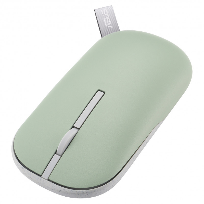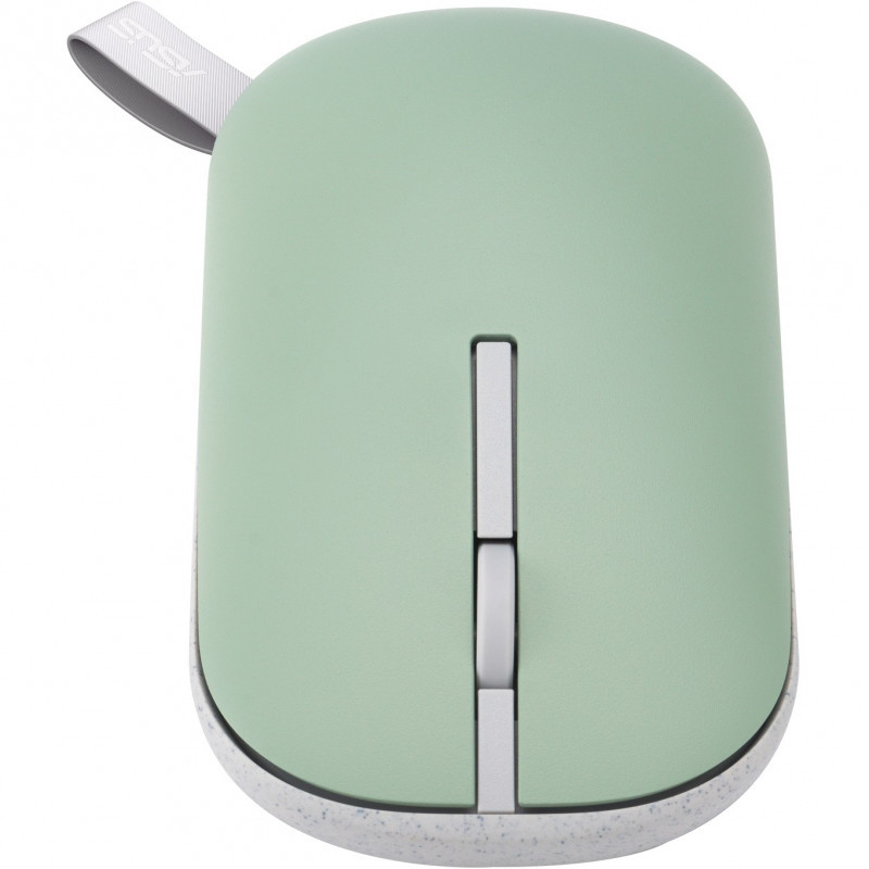 "ASUS Marshmallow Mouse MD100. Form factor: Ambidextrous. Movement detection technology: Optical, Device interface: RF Wireless + Bluetooth, Movement resolution: 1600 DPI, Buttons type: Pressed buttons, Buttons quantity: 3, Scroll type: Wheel. Power source: Batteries. Works on any surface. Product colour: Beige, Green"\n"The compact ASUS Marshmallow Mouse MD100 adds a dash of vibrancy to your day with its quick-switch magnetic covers, and a handy strap that makes it easy to carry around. For safety and better hygiene, the covers include ASUS Antibacterial Guard treatment to inhibit the growth of harmful bacteria. ASUS Marshmallow Mouse MD100 also offers easily adjustable DPI levels for varying degrees of precision, plus 100% PTFE mouse feet for a smooth glide on any flat surface."