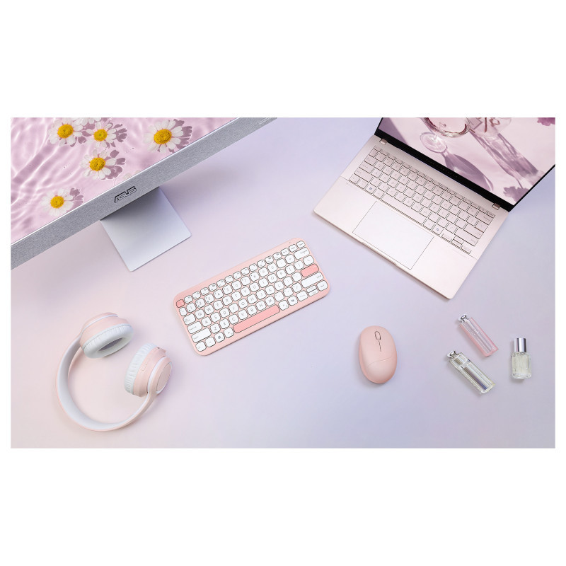 "ASUS Fragrance Mouse MD101. Form factor: Ambidextrous. Movement detection technology: Optical, Device interface: RF Wireless + Bluetooth, Movement resolution: 2400 DPI, Buttons type: Pressed buttons, Buttons quantity: 3, Scroll type: Wheel. Power source: Batteries. Product colour: Pink"\n"Scent your space, perfect your pace