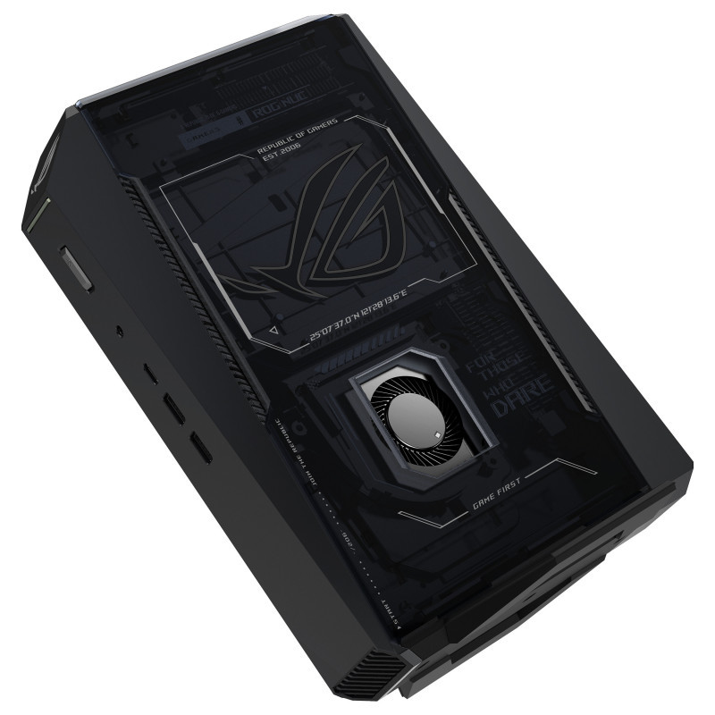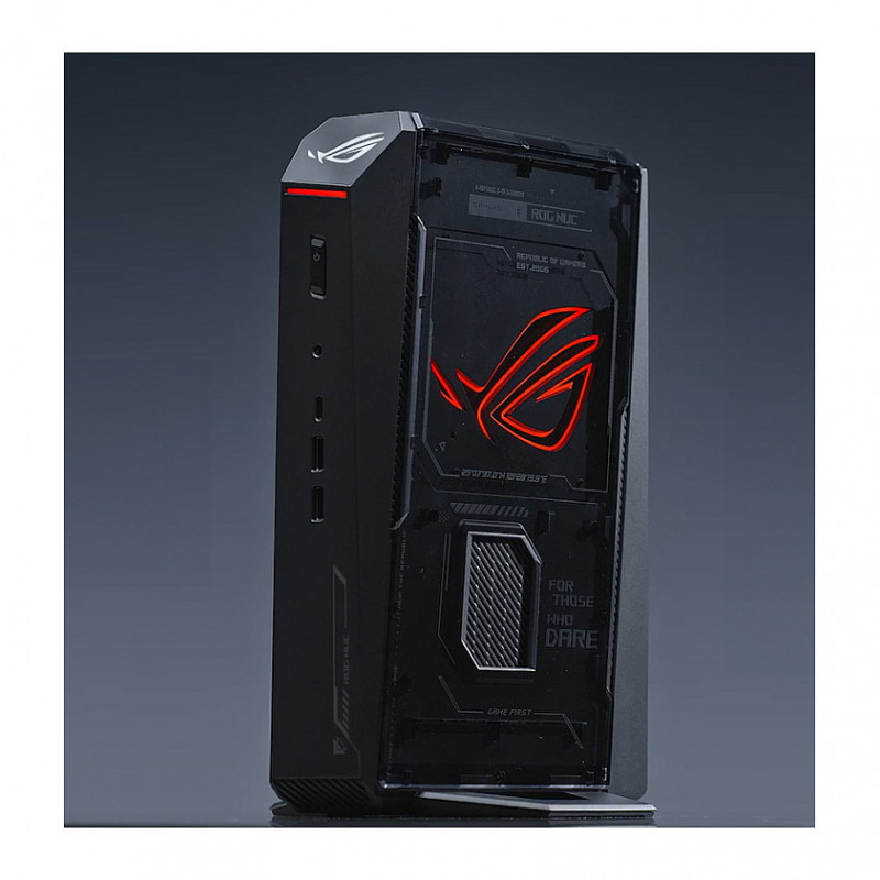 Unlock new gaming horizons with ROG NUC (2025), powered by the Intel® Core™ Ultra processors (Series 2) ARL-HX and up to NVIDIA® GeForce RTX™ 5080 Laptop GPU. Equipped with triple fan cooling and support for four 4K displays, this compact powerhouse delivers unprecedented performance."