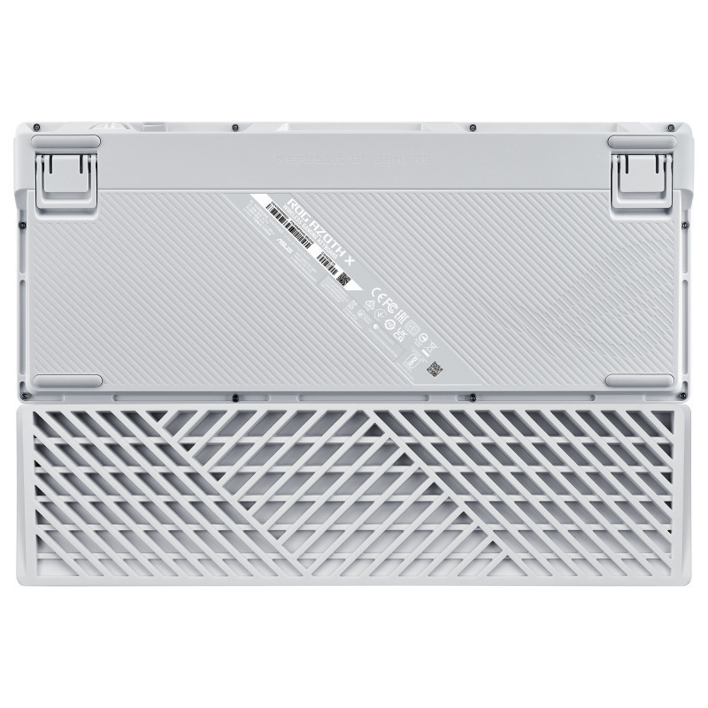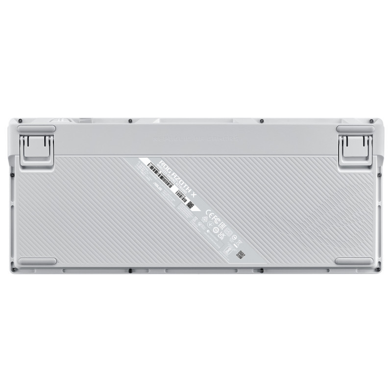 "ASUS ROG Azoth X. Keyboard form factor: 75%, Connectivity technology: Wired & Wireless, Device interface: USB + RF Wireless + Bluetooth, Keyboard key switch: Mechanical. Backlight type: RGB LED, Wrist rest. Cable length: 2 m. Recommended usage: Gaming. Product colour: Black, White"\n"ROG Azoth X 75% custom gaming keyboard with hot-swappable ROG NX V2 Mechanical Switches, dye-sublimated and semi-translucent keycaps, metal top cover, gasket mount, five-layer dampening foam, FR4 positioning plate, south-facing PCB, tri-mode connection with 2.4 GHz SpeedNova technology, OLED display, three-way control knob, wrist rest, three tilt angles, and Mac support