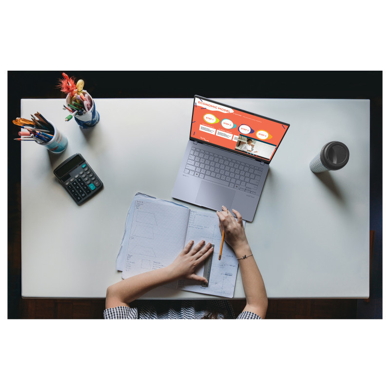 Say goodbye to battery anxiety! ASUS Vivobook S 14 OLED boasts a generous 75 Wh high-capacity battery5, providing long-lasting power for your entire day. What’s more, its fast-charging technology enables swift recharges so you can swiftly return to work or play without any delays.
