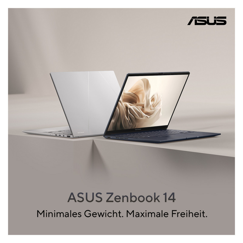 "ASUS Zenbook 14 OLED UX3405CA-QL637W. Product type: Laptop, Form factor: Clamshell. Processor family: Intel Core Ultra 7, Processor model: 255H. Display diagonal: 35.6 cm (14""), HD type: WUXGA, Display resolution: 1920 x 1200 pixels. Internal memory: 16 GB, Internal memory type: LPDDR5x-SDRAM. Total storage capacity: 1 TB, Storage media: SSD. On-board graphics card model: Intel Arc 140T. Operating system installed: Windows 11 Home. Product colour: Blue. Weight: 1.28 kg"\n"New Zen with AI