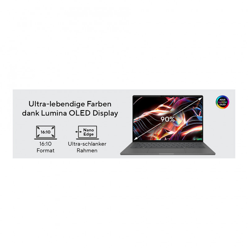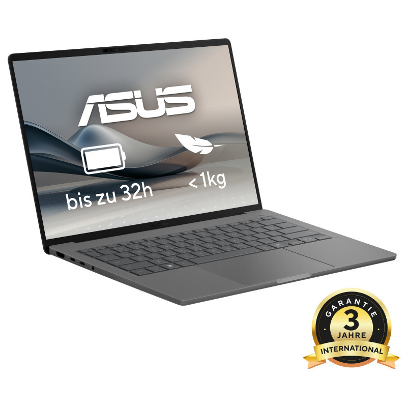 "ASUS Zenbook A14 UX3407RA-QD010W. Product type: Laptop, Form factor: Clamshell. Processor family: Qualcomm Snapdragon, Processor model: X1E-78-100. Display diagonal: 35.6 cm (14""), HD type: WUXGA, Display resolution: 1920 x 1200 pixels. Internal memory: 32 GB, Internal memory type: LPDDR5x-SDRAM. Total storage capacity: 1 TB, Storage media: SSD. On-board graphics card model: Qualcomm Adreno GPU. Operating system installed: Windows 11 Home. Product colour: Grey. Weight: 980 g"\n"ASUS Zenbook A14