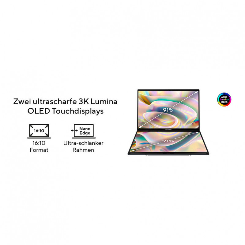 ASUS Zenbook DUO is a revolutionary dual-screen laptop, with two full-size OLED touchscreens1, detachable full-size keyboard and built-in kickstand, — expertly combining multitasking versatility with superb mobility. With dual 14-inch 3K OLED 120 Hz displays, you can instantly expand your workspace to up to 19.8 inches. Outstanding performance is assured with up to an AI-powered Intel® Core™ Ultra 9 processor and 32 GB LPDDR5x memory, plus up to a 2 TB PCIe® 4.0 SSD. Paired with dedicated smart software, intuitive gesture control and an enhanced-lifespan 75 Wh battery, the easy-to-use Zenbook DUO maximizes productivity, with zero fuss. Come on — Let’s DUO it. "