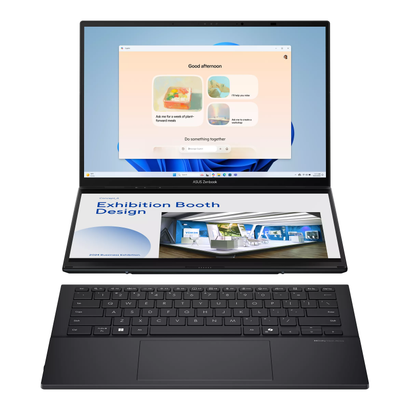 Asus Zenbook Duo UX8406CA-QL358X | Inkwell Gray | 14 " | OLED | Touchscreen | FHD | 1920 x 1200 pixels | 60 Hz | Glossy | Intel Core Ultra 7 | 255H | 16 GB | LPDDR5X | Solid-state drive capacity 1000 GB | Intel Arc Graphics | Windows 11 Pro | 802.11be | Bluetooth version 5.4 | Keyboard language US international | Keyboard backlit | Warranty 24 month(s) | Battery warranty 12 month(s)