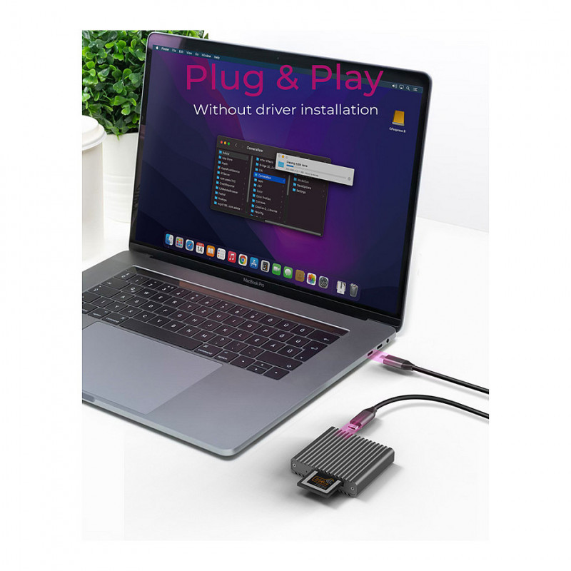 A good mixture for the highest expectations: with USB 3.2 (Gen 2), data transfer rates of up to 10 Gbit/s are achieved. Together with the NVMe protocol of the CFexpress Type-B memory cards, this results in a highly performant combination. Copy your files at 1 GB per second!