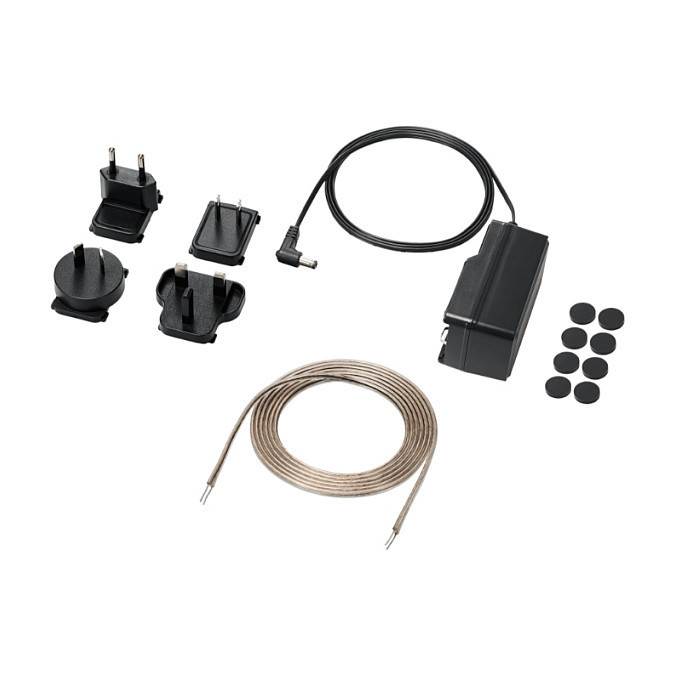 Powered by the included AC adapter (which comes with three adapters for international use) and joined by a long 6.6' (2.0 m) speaker cable, the speakers are easy to set and use in any space – requiring no external receiver or amplifier. Devices connect directly to the speakers’ dual RCA jacks or wirelessly via Bluetooth® technology. A power button with LED indicator and volume control dial keep operation simple.