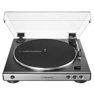"Audio-Technica AT-LP60XUSB. Type: Belt-drive audio turntable, Operation: Fully automatic, Product colour: Grey, Metallic. Power supply type: AC, Power consumption (typical): 3 W, AC adapter input voltage: 115 / 230 V. Width: 359.5 mm, Depth: 373.3 mm, Height: 97.5 mm. Package weight: 3.6 kg, Package width: 472 mm, Package depth: 424 mm. Cables included: Audio (3.5mm), RCA, USB"\n